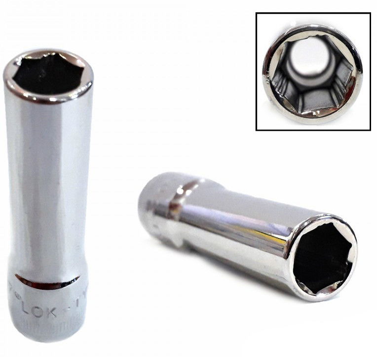 Lok-Typ dugókulcs fej, 3/8"-os, 6 lap fejű kiszerelésben, erős Chrome-Vanádium acélból készült, skót ipari minőségű.