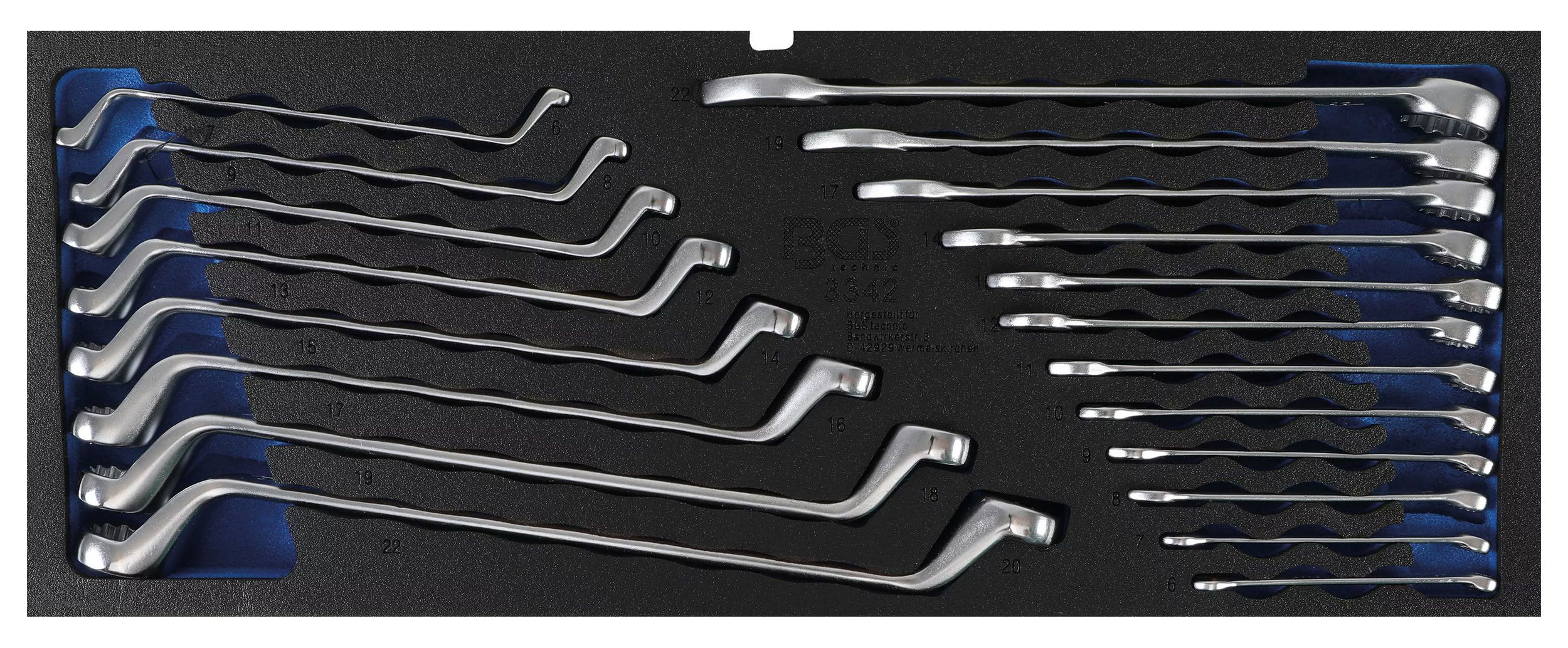 BGS Technic 9-3342 EVA tálcás csillag-villáskulcs és hajlított csillagkulcs készlet, metrikus, 20 részes
